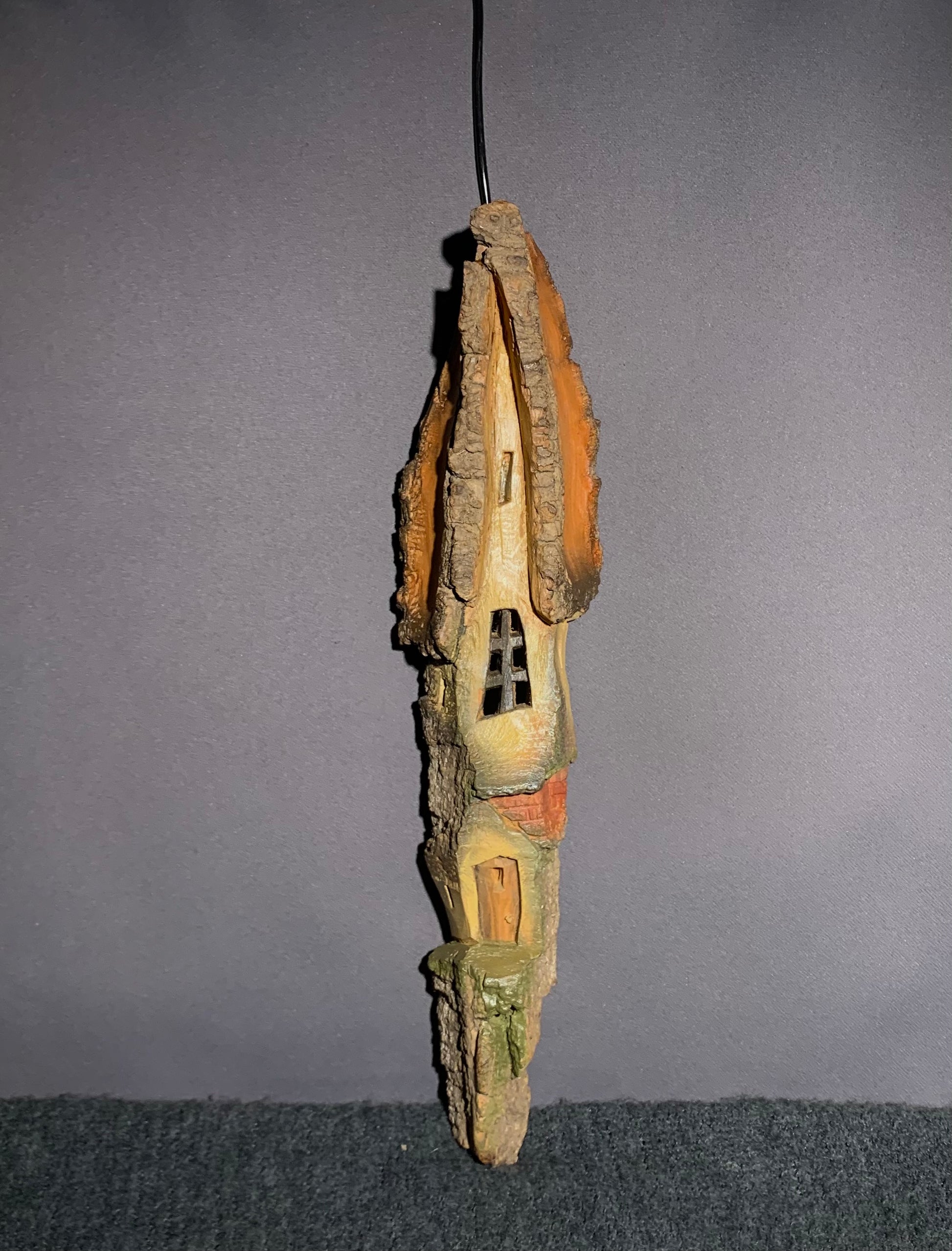 This piece is made out of Eastern Cotton Wood Bark, painted using acrylic paint and lightly coated in water based varnish.
