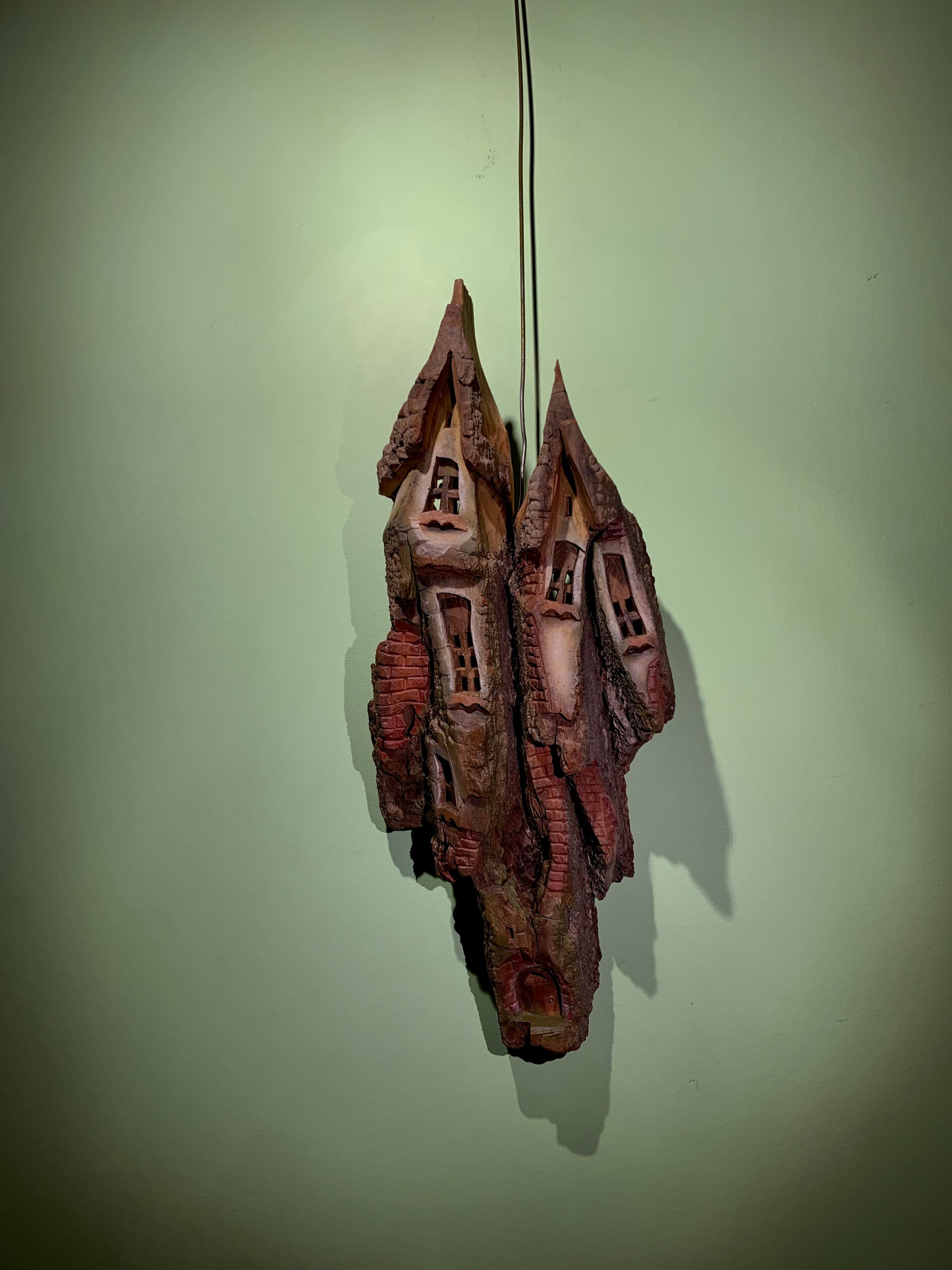 This piece is made out of Eastern Cotton Wood Bark, painted using acrylic paint and lightly coated in water based varnish.