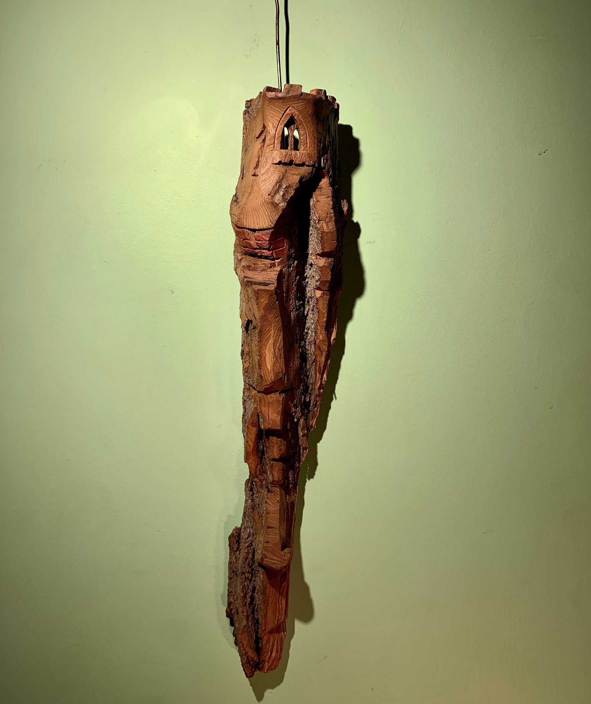 This piece is made out of Eastern Cotton Wood Bark, painted using acrylic paint and lightly coated in water based varnish.