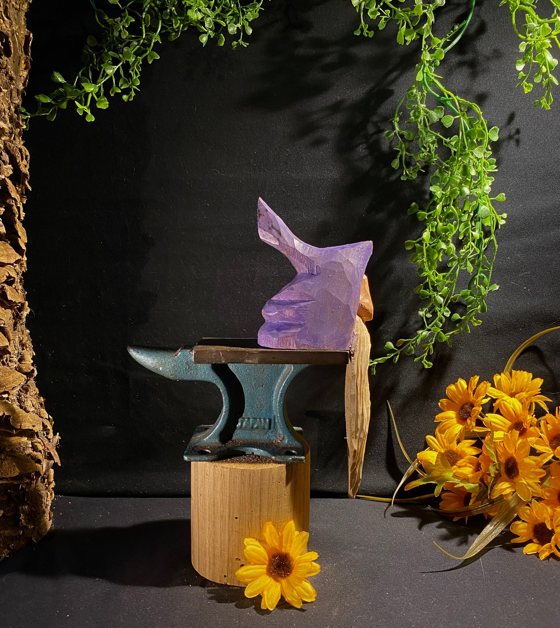This shelf elf is hand-carved Basswood, stained in water base stain and painted with acrylic paint.