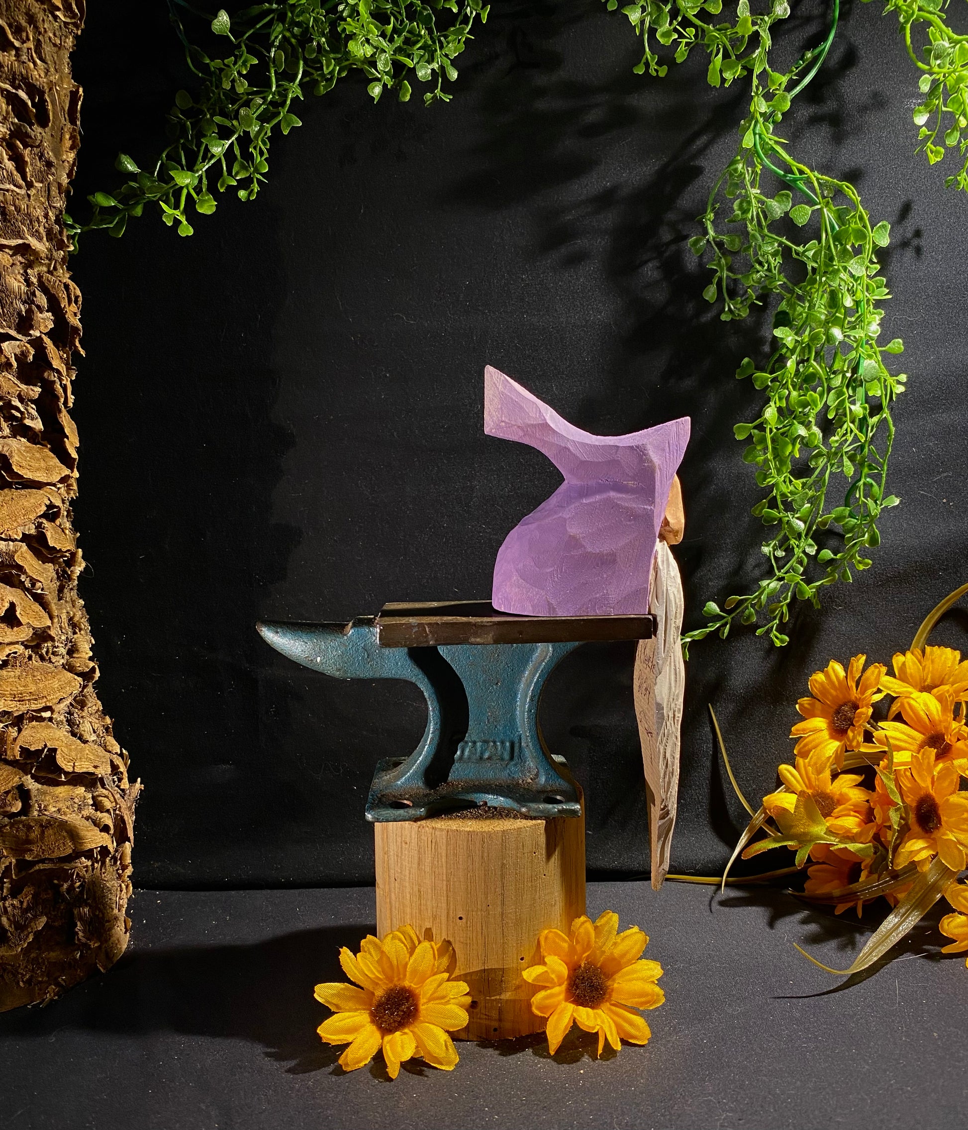 This shelf elf is hand-carved Basswood, stained in water base stain and painted with acrylic paint.