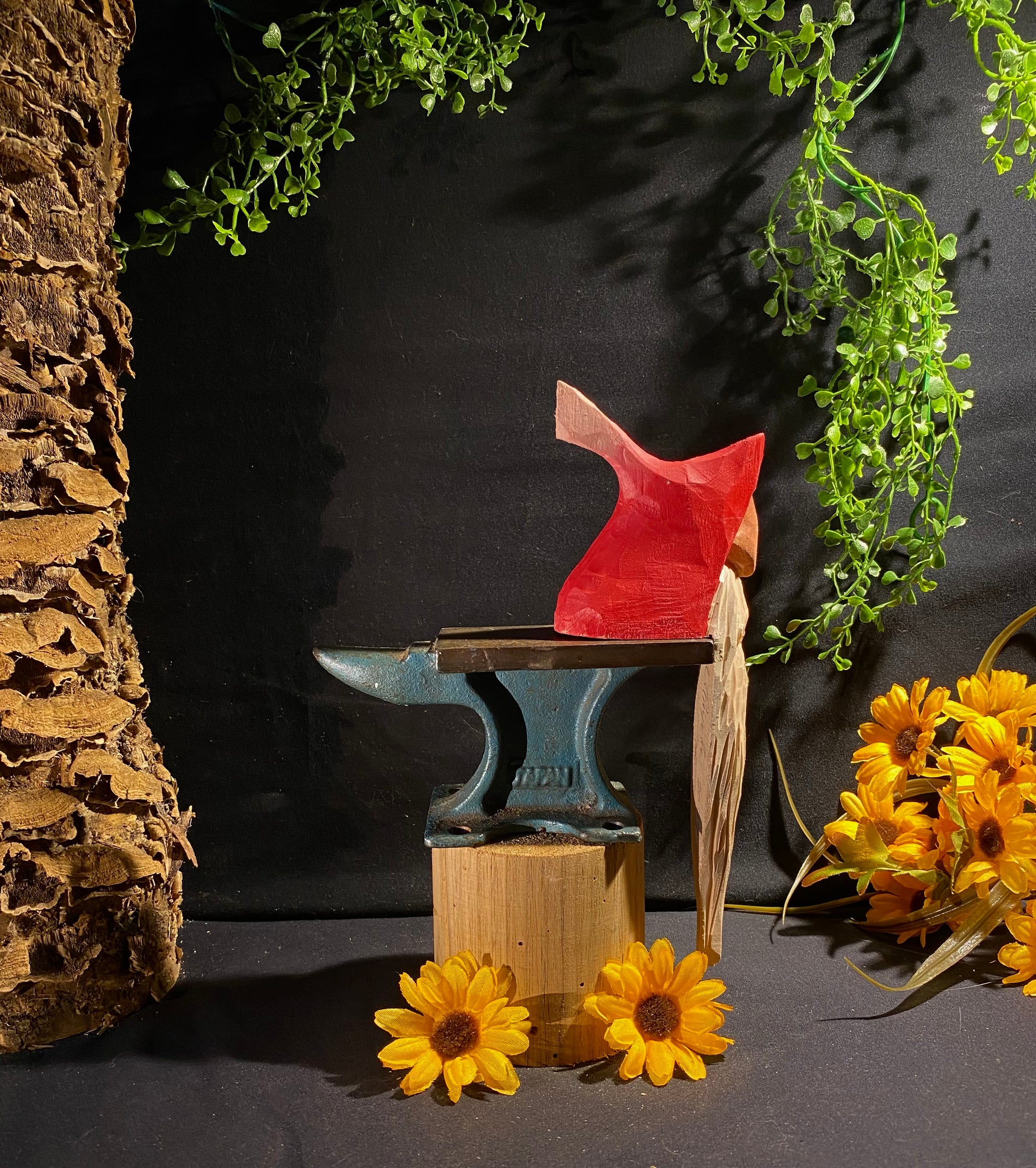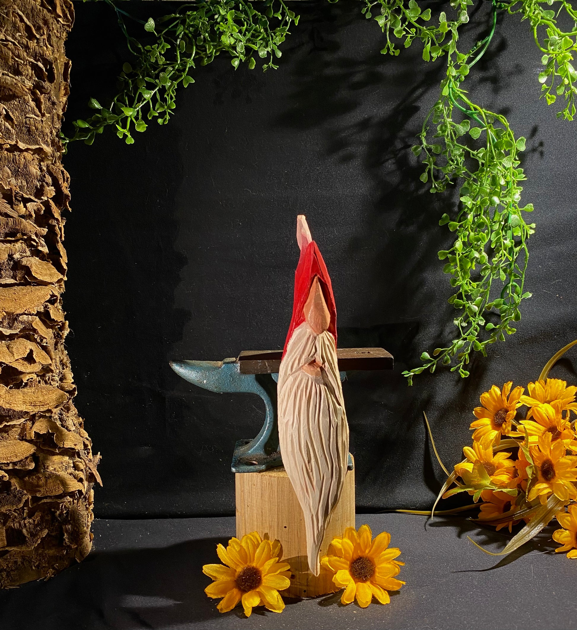 This shelf elf is hand-carved Basswood, stained in water base stain and painted with acrylic paint.